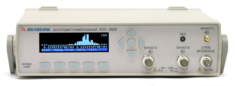 Универсальный частотомер Актаком АСН-8324 - это прибор из серии первых российских десятиразрядных частотомеров с OLED дисплеем. Частотомер предназначен для измерения частоты, периода, длительности импульса и скважности сигнала, а также имеет встроенный счетчик импульсов. Частотомер АСН-8324 обеспечивает возможность выполнения математических операций с полученными данными и статистическую обработку результатов измерений. Наличие интерфейсов USB и LAN (опционально) позволяет подключать прибор к персональному компьютеру, что обеспечивает возможность удаленного управления прибором в системах автоматизированных измерений, а также обработку и архивирование результатов измерений.
